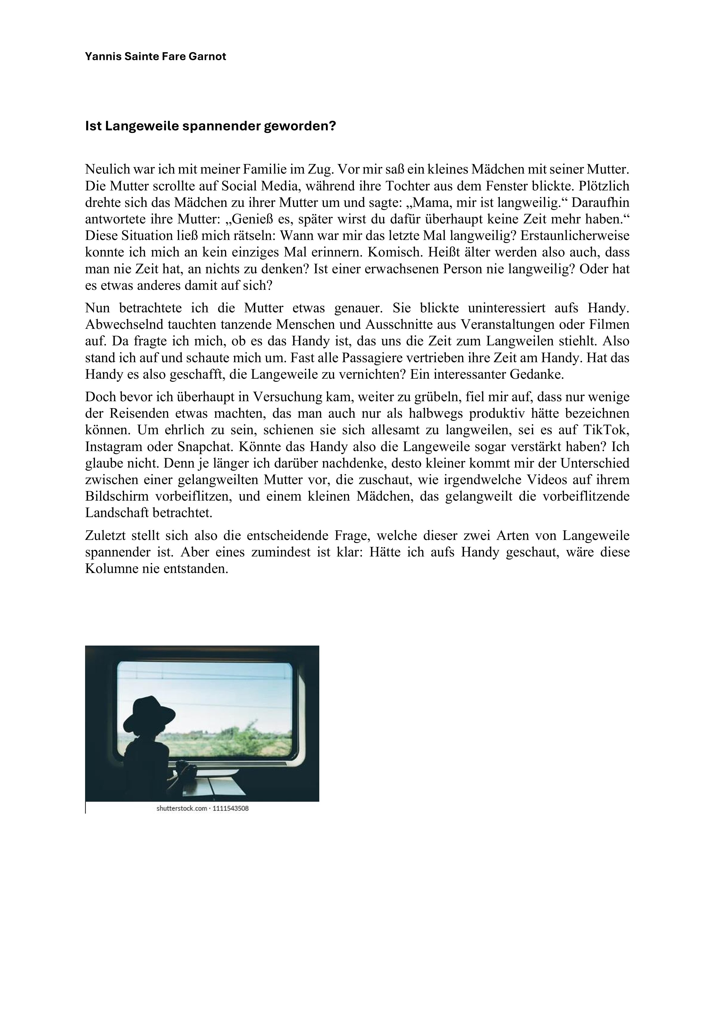 Ist Langeweile spannender geworden? Text 12. Feb. Verfasst von Jean-Pierre Ritler Von Yannis Sainte Fare Garnot / Klasse 4c, Literargymnasiums Rämibühl, Zürich / Februar 2026 Jean-Pierre Ritler http://www.jprmedia.info